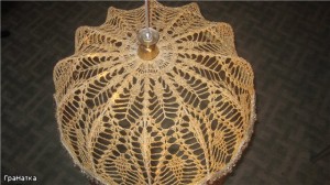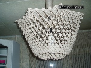 Для начала убираем у зонта все лишнее, снимаем ткань, отделяем лишние спицы и ручку с потрошками и механизмами. Остается у нас маленький зонтик, т. е. 8 спиц с распорками и так называемая втулка, на которой все это держится. Во втулку легко вставляются провода с патроном. В данном примере крепится не за ручку, а за верх, где раньше была пимпочка у зонта, на моем зонте после разборки там осталась дырочка, туда одела колечко, а колечко уже на крюк на потолке. Чтобы скрыть провода, я использовала пластмассовую шпулю от пряжи на бабинах, а спицы с помощью клея ПВА обмотаны ниткой.