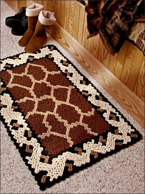 Ну так вот, прихватки мы эти вязали таким же макаром что и вяжутся эти коврики! Очень просто! Все что вам нужно уметь - это вязать воздушные петли, столбики с накидом и … всё! Основа такого коврика вяжется на основе филейного вязания.
