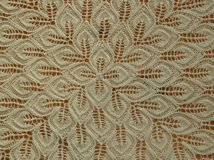 Для изготовления ажурного полотна зонта подберите узор скатерти, разбитой на сектора, число которых равно числу лучей пластмассовой или железной основы.