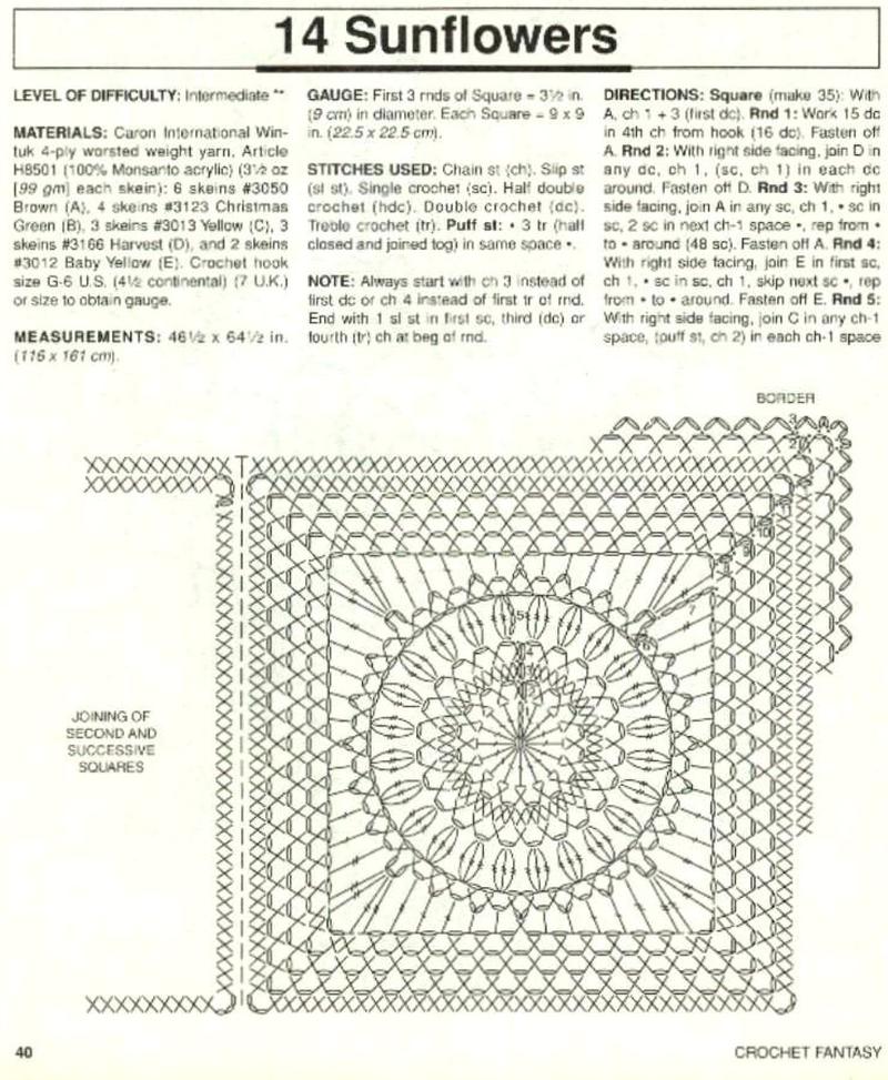 Очень красивый плед, нашла в одном из старых журналов, не смогла удержаться, то бы не добавить. Описание конечно хромает, но я думаю кто захочет - разберется, схема есть, по цветам можно разобраться.