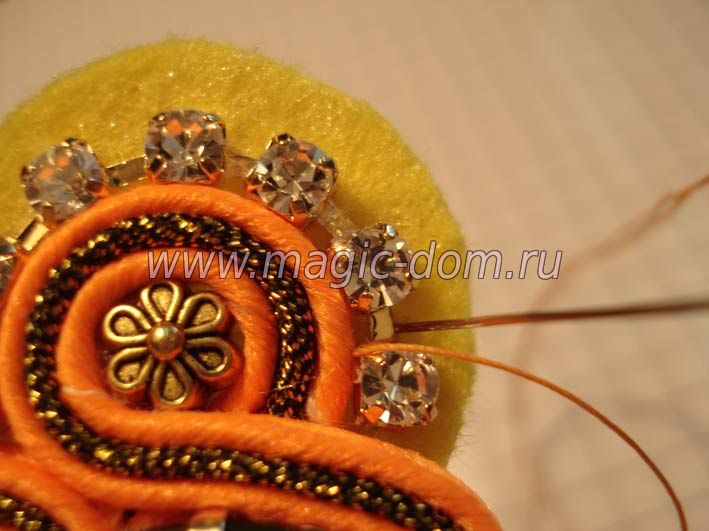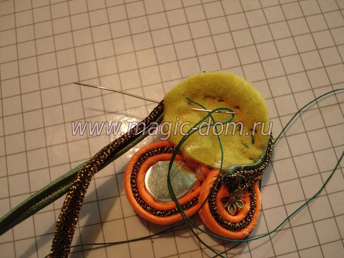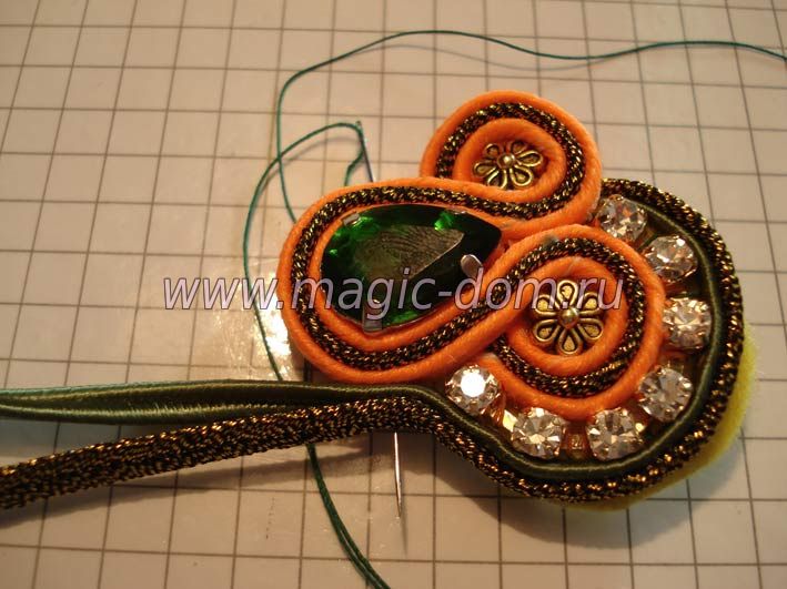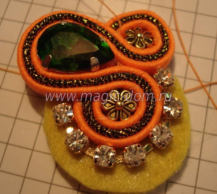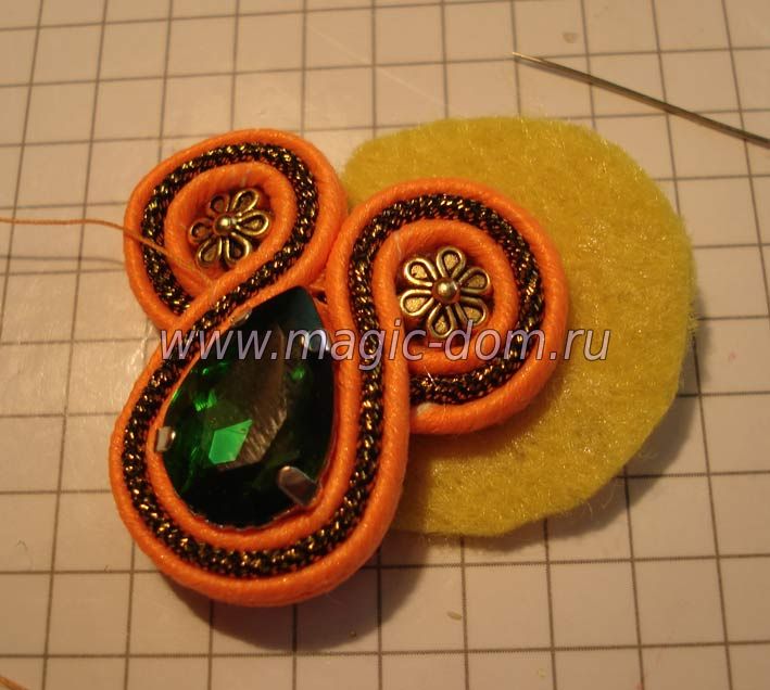 сутаж обрезан ,приклеен и пришит. получается вот такая деталь.