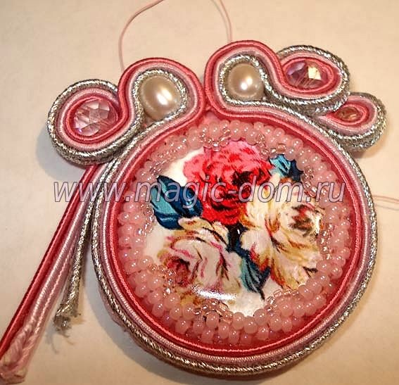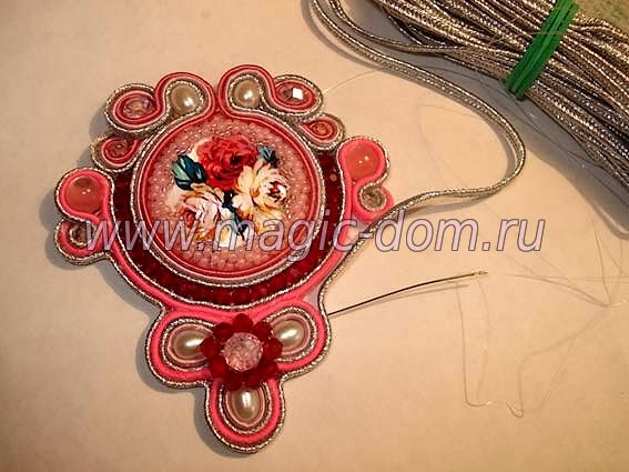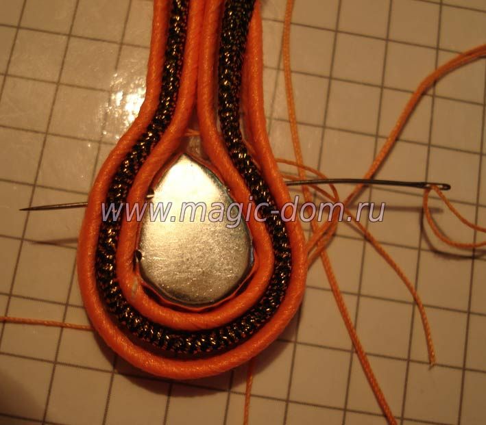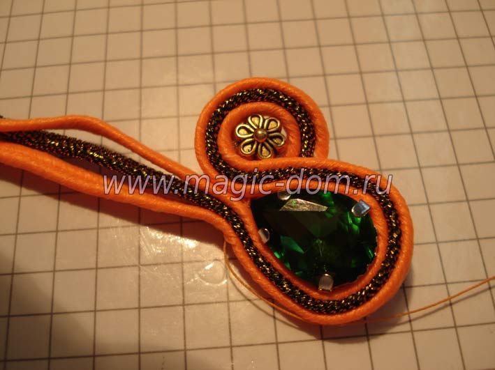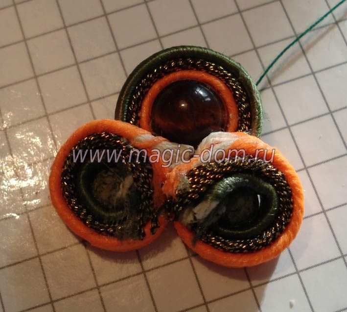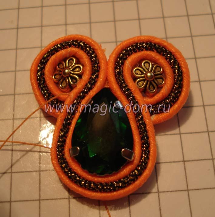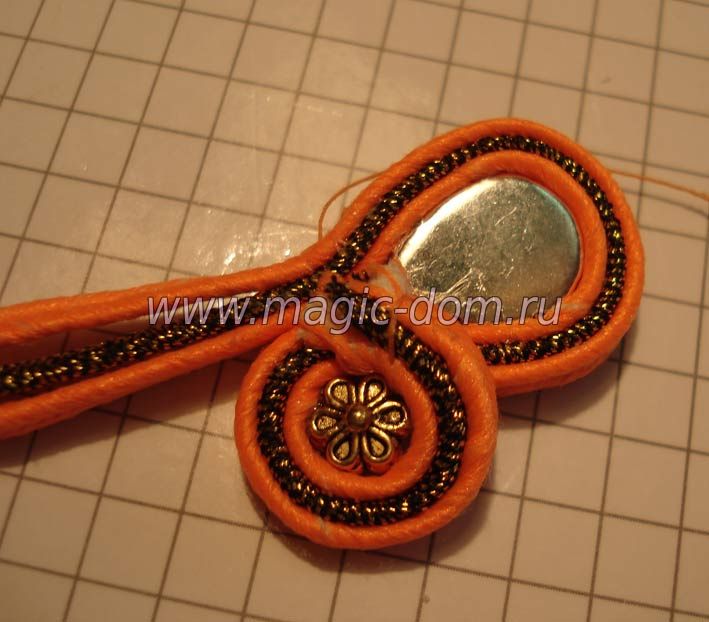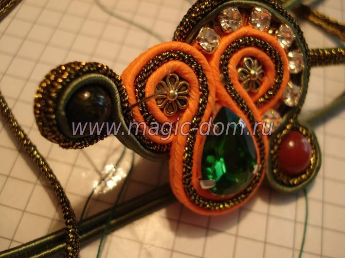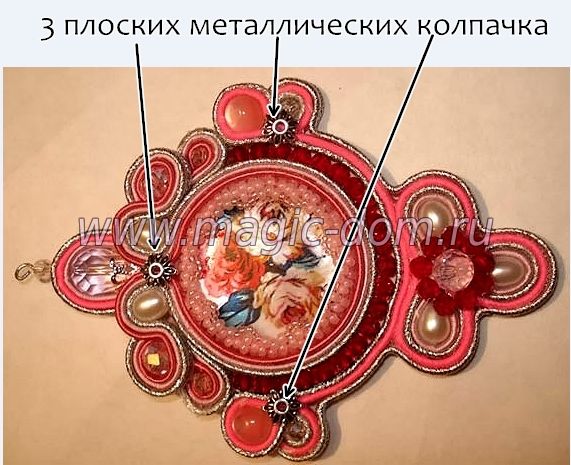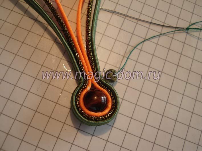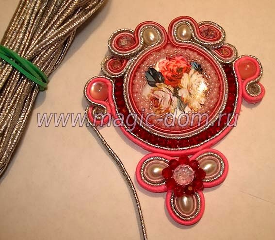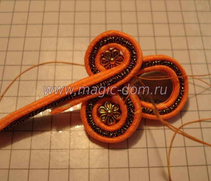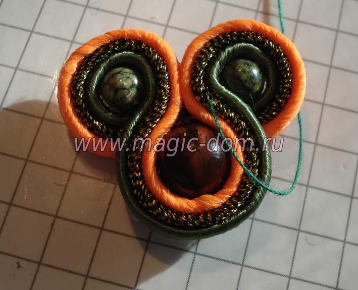 очень важно-сутажные завороты с бусинками должны быть одинаковы с обеих сторон,тогда при завершении работы кулон будет ровным.