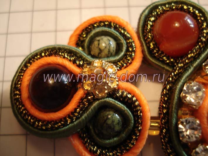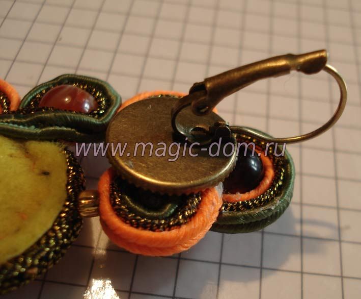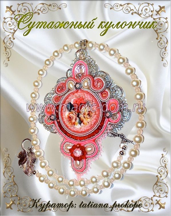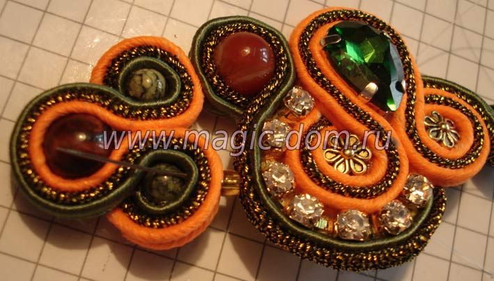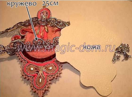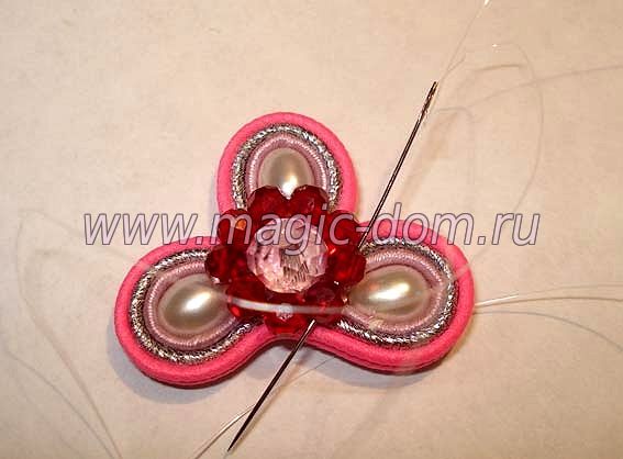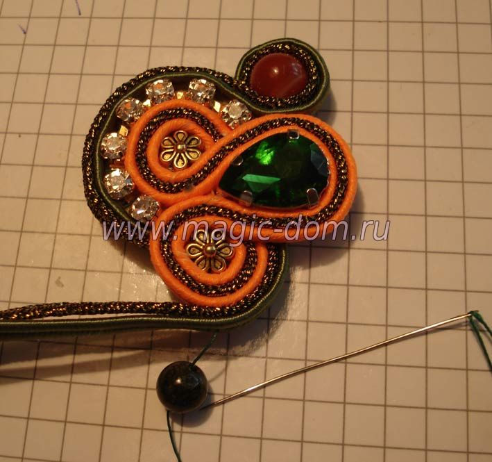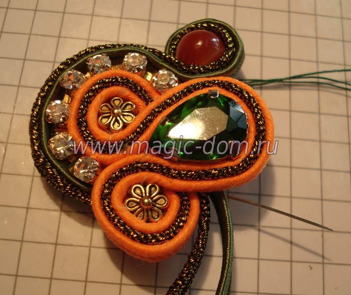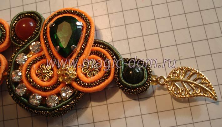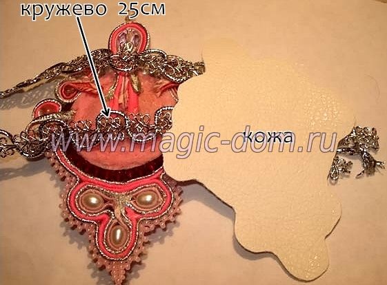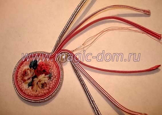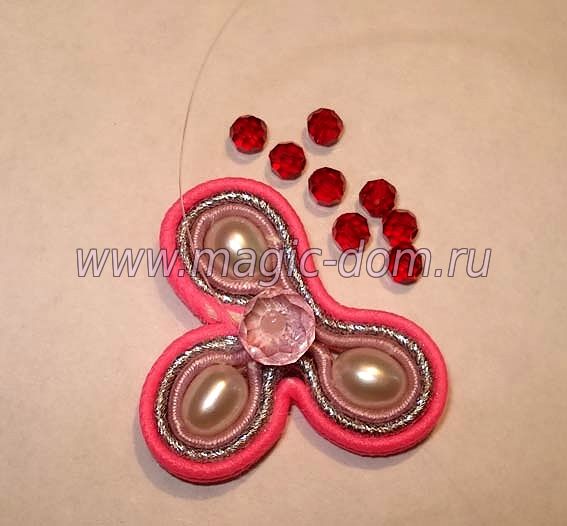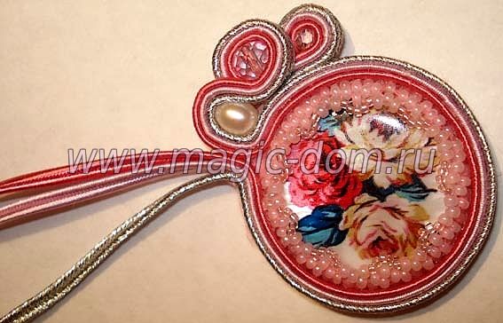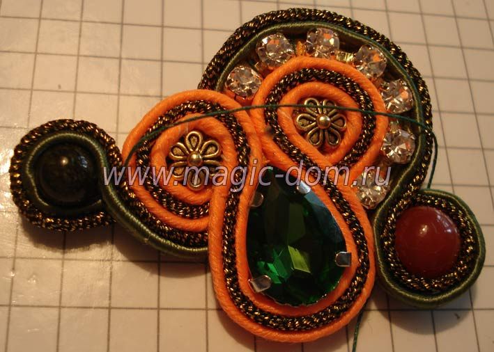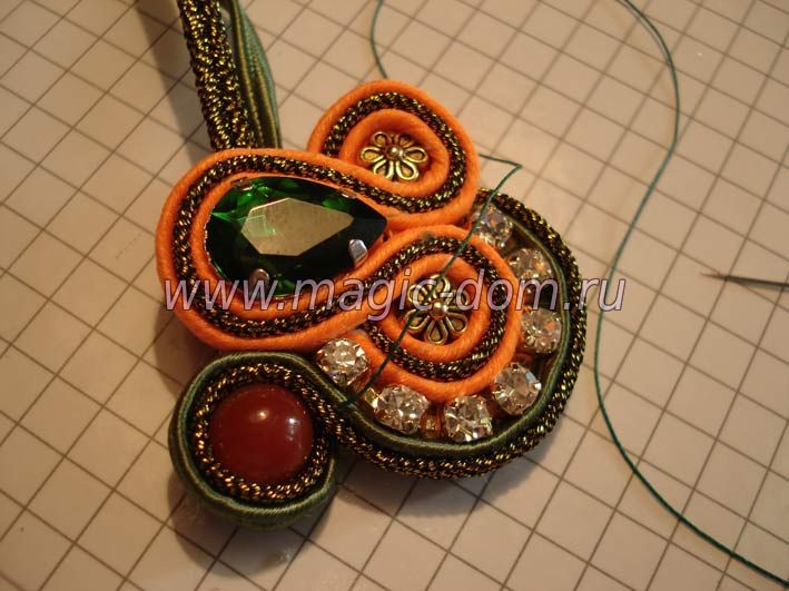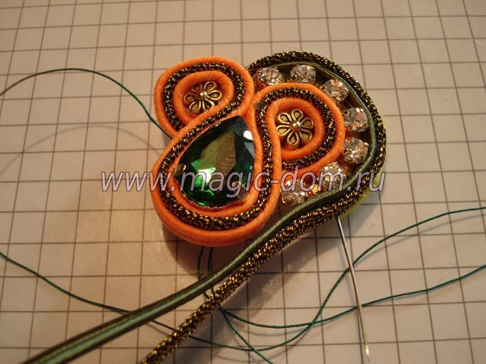 очень важно-сутажные завороты с бусинками должны быть одинаковы с обеих сторон,тогда при завершении работы кулон будет ровным.