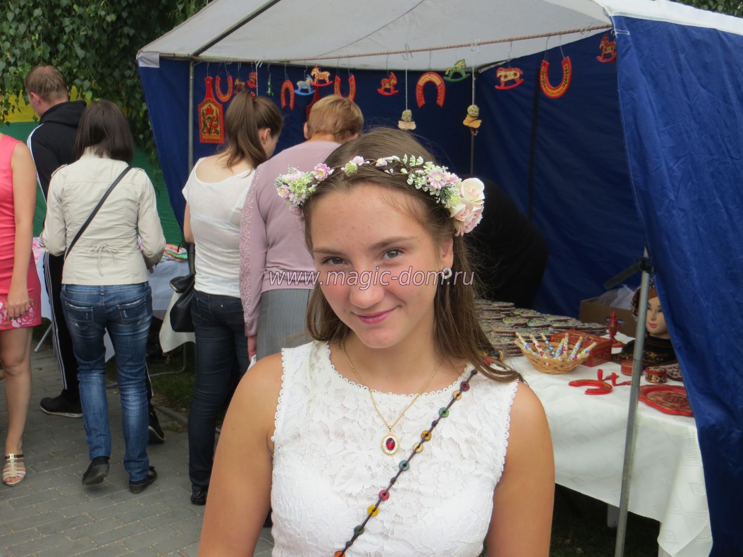 а это на ярмарке в Городце Нижегородской области девушка примеряет мой веночек !!!