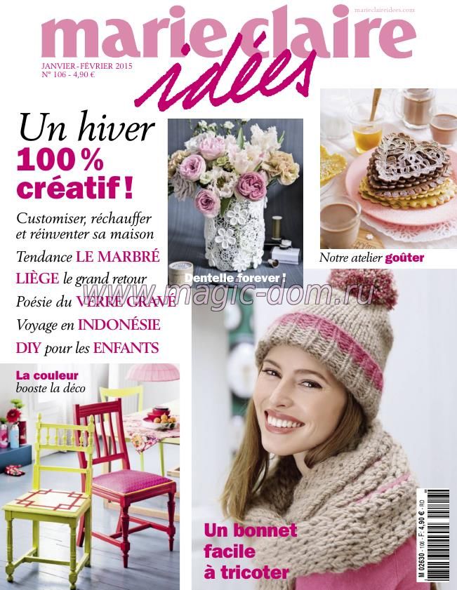 Формат: PDF Язык: французский Cтраниц: 148 Размер: 27 mb Marie Claire idees - модный журнал из Франции по всем видам рукоделия и творчества. Это один из лучших журналов об умении создания своей жизни и жизненного пространства, украшении дома и дизайне помещений. "Marie Claire Idees" целеустремлённо и с женским изяществом представляет рекомендации и тренды для всех креативных читателей, которые желают персонализировать и декорировать свои квартиры, показать изобретательность в кулинарии и обрести "СВОЙ" стиль.