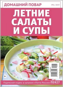 Домашний повар - замечательный кулинарный журнал, каждый из выпусков которого посвящен определенной тематике. В журнале собраны не только рецепты, но и различные советы и небольшие секреты от поваров. Тема номера: Летние салаты и супы. В выпуске вы найдете идеи свежих летних салатов из сезонных овощей: редиса, щавеля, огурчиков, помидоров и т.д.; рецепты ягодных и фруктовых супов, которые наверняка станут любимыми у детей любого возраста и многое другое. Приятного аппетита и будьте здоровы.