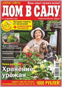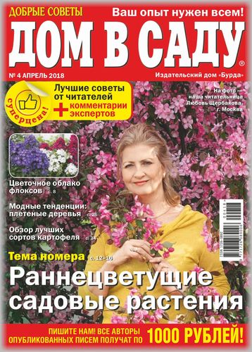 «Добрые советы. Дом в саду» - ежемесячный журнал для всех, кому интересно садоводство, огородничество, строительство и ландшафтные работы. Основная часть журнала — письма читателей, в которых они делятся своим опытом выращивания декоративных, садовых и овощных культур, обустройства дачного участка, защиты растений от болезней и вредителей, строительства и украшения дома.