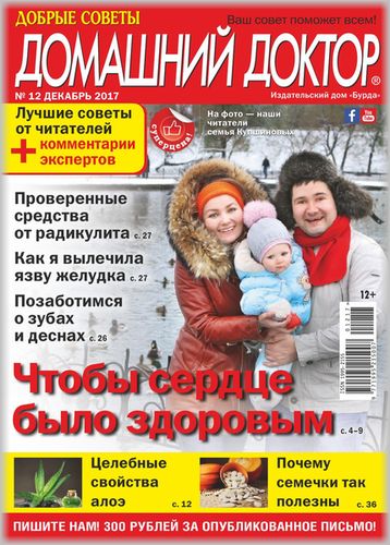 Народный журнал о здоровье, уникальный и непохожий на другие издания медицинской тематики - основу журнала составляют письма читателей. В них авторы рассказывают свои истории исцеления, делятся рецептами народной медицины, проверенными на собственном опыте, просто обращаются друг к другу за помощью или дают советы тем, кто не может самостоятельно справиться со своим недугом. Кроме этого, на страницах журнала читатели могут получить консультацию высококвалифицированных специалистов и найти ответы на любые свои вопросы.