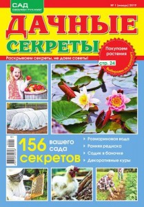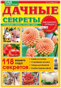 «Дачные секреты» - это универсальный помощник всем садоводам и огородникам. В каждом номере: наиболее интересные советы читателей, мнение экспертов и рекомендации специалистов по благоустройству садового участка. На страницах журнала можно найти полезную информацию о выращивании фруктов и овощей, рекомендации по сезонным работам на приусадебном участке. Благодаря разделению на рубрики читателю очень удобно находить интересующие его темы. Основные рубрики журнала: На огороде, Работы в саду, Плодовый сад, Цветник, Своими руками, Будьте здоровы, Дачные рецепты.