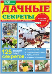 «Дачные секреты» - это универсальный помощник всем садоводам и огородникам. В каждом номере: наиболее интересные советы читателей, мнение экспертов и рекомендации специалистов по благоустройству садового участка. На страницах журнала можно найти полезную информацию о выращивании фруктов и овощей, рекомендации по сезонным работам на приусадебном участке.