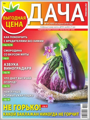 "Дача" - верный помощник для садоводов и огородников в самый разгар дачных работ и в другое время года. Издание составлено из писем читателей, которые делятся своим опытом, советами и успехами. На страницах журнала - советы по посадке и уходу за растениями, рекомендации умелого мастера, консультации специалистов и многое другое.