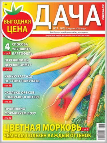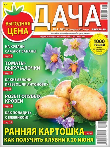 "Дача" - верный помощник для садоводов и огородников в самый разгар дачных работ и в другое время года. Издание составлено из писем читателей, которые делятся своим опытом, советами и успехами. На страницах журнала - советы по посадке и уходу за растениями, рекомендации умелого мастера, консультации специалистов и многое другое.